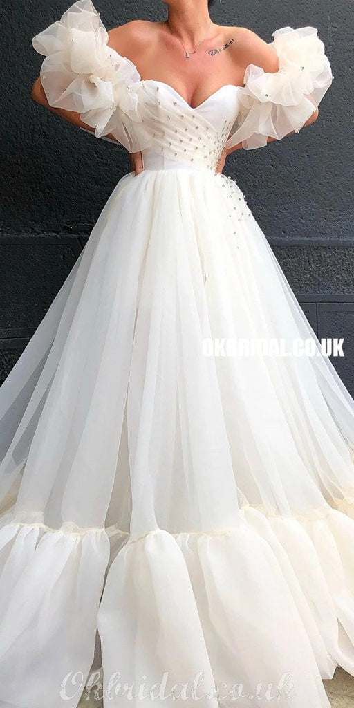 Off Shoulder A-line Organza Charming Sweetheart Rhinestone Prom Dresses, FC4142