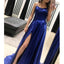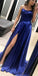 Royal Blue A-Line Sexy Slit Backless Long Elastic Satin Prom Dresses, FC215