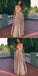 Sexy V-Neck Backless Slit A-Line Sparkle Spaghetti Straps Prom Dress, FC430