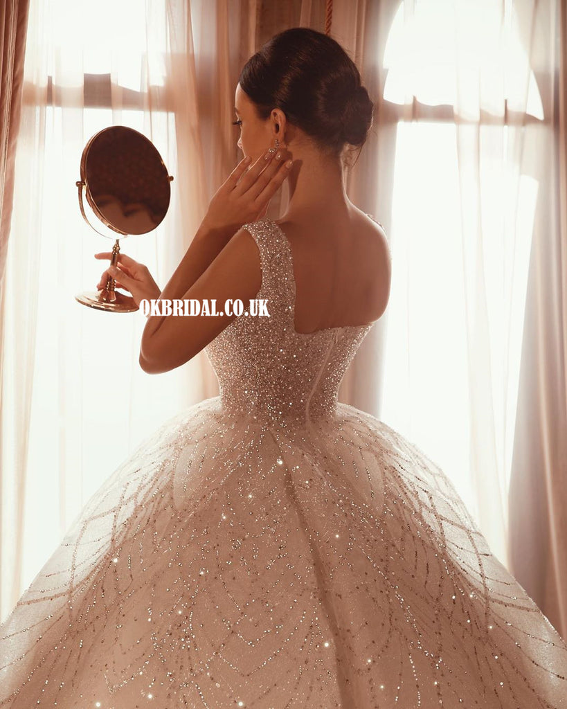 Sparkle A-line Sequin Sleeveless Backless Wedding Dresses, FC4951 Sparkle A-line Sequin Sleeveless Backless Wedding Dresses, FC4951