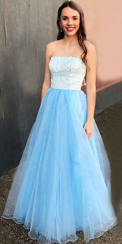 A-line Tulle Straight Neckline Backless Lace Beaded Prom Dresses, FC1589