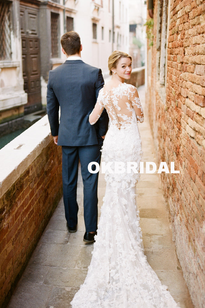 Charming Long Sleeve Wedding Dress, Luxury Lace Mermaid Wedding Dress, KX788 Charming Long Sleeve Wedding Dress, Luxury Lace Mermaid Wedding Dress, KX788