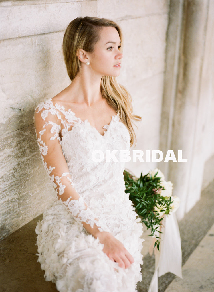 Charming Long Sleeve Wedding Dress, Luxury Lace Mermaid Wedding Dress, KX788