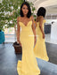 Yellow One Shoulder Lace Mermaid Charming Cheap Long Wedding Party Bridesmaid Dresses, WG304