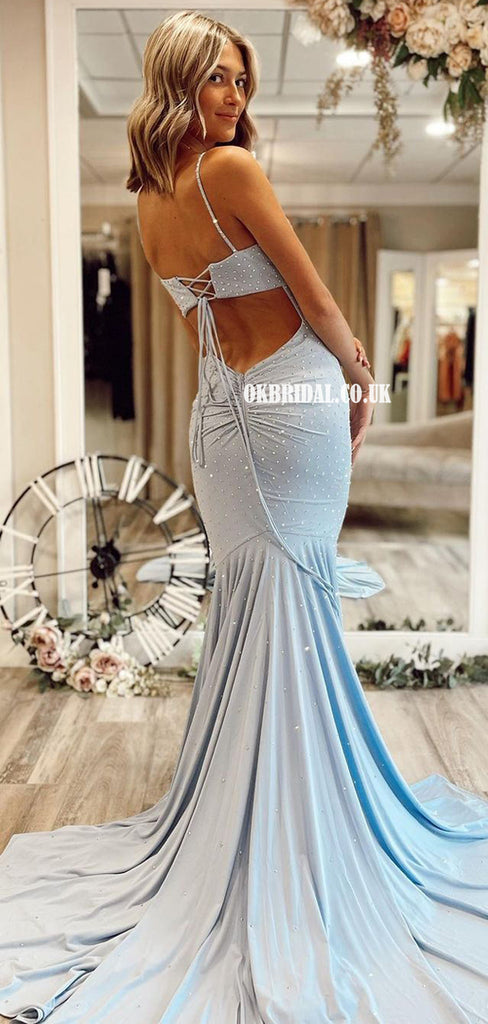 Charming Spaghetti Straps Mermaid V-neck Backless Long Prom Dresses, FC6220