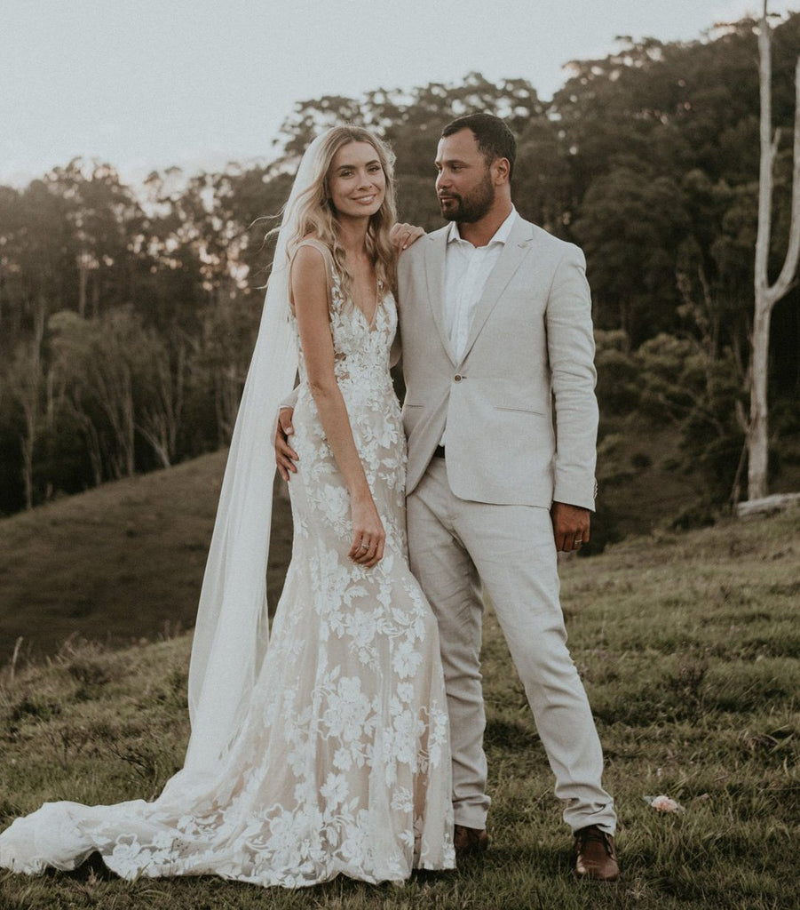 Lace Sleeveless V-neck Backless Long Mermaid Wedding Dresses, FC1862