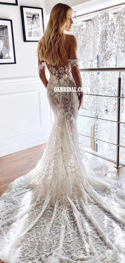 Stunning Off Shoulder Lace Mermaid Sweetheart Backless Wedding Dresses, FC5864