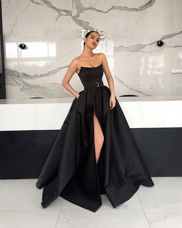 Black Satin Backless Simple A-Line Slit Cheap Long Prom Dresses, FC2121 Black Satin Backless Simple A-Line Slit Cheap Long Prom Dresses, FC2121