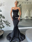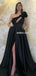 Gorgeous A-line Black Satin Slit Sequin One-shoulder Prom Dresses, FC6481