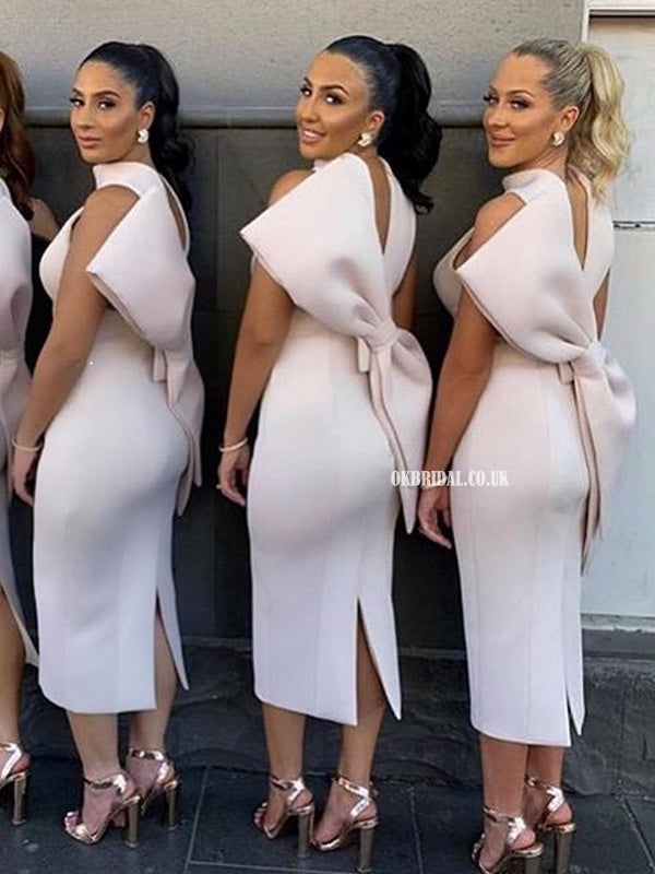 High Neck Satin Sleeveless Tea-Length Honest Bridesmaid Dress, FC2596 High Neck Satin Sleeveless Tea-Length Honest Bridesmaid Dress, FC2596