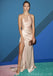One Shoulder Backless High Slit Pleated Sleeveless Prom Dress, FC3808