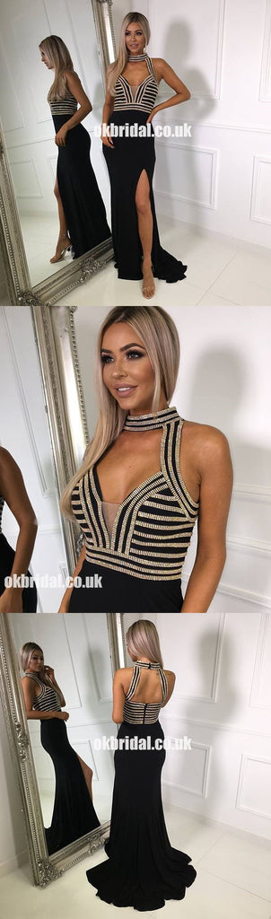 Beautiful Black Side Split Chiffon Prom Dress, Open Back Charming Beaded Prom Dresses, KX1224 Beautiful Black Side Split Chiffon Prom Dress, Open Back Charming Beaded Prom Dresses, KX1224