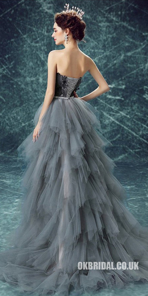 Long Prom Dresses, High Low Prom Dress With Cascading Ruffles, A-Line Party Dresses, Tulle Evening Dresses, Sweet heart Prom Dresses , Feather Prom Dresses, Charming Prom Dress, LB0493