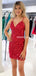 Red Spaghetti Straps A-line Sequin Sparkle Beaded Homecoming Dress, FC6138