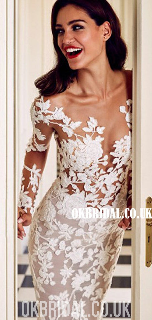 Gorgeous Lace Mermaid Long Sleeves Round Neck Wedding Dresses, FC4688 Gorgeous Lace Mermaid Long Sleeves Round Neck Wedding Dresses, FC4688
