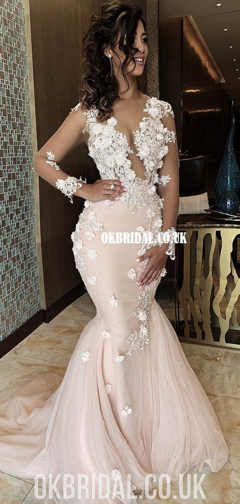 Newest Long Sleeves Lace Appliques Mermaid Tulle Wedding Dresses, FC4046 Newest Long Sleeves Lace Appliques Mermaid Tulle Wedding Dresses, FC4046