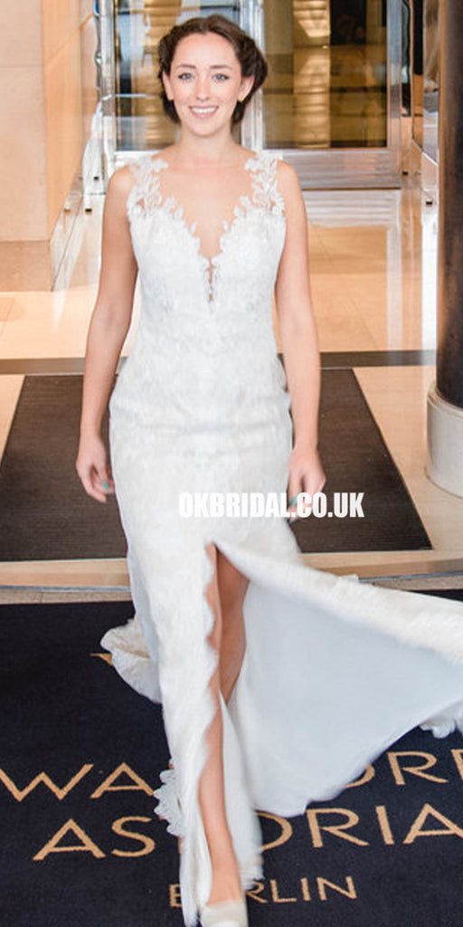 Round Neck Lace Mermaid Sexy Slit Backless Wedding Dresses, FC1709