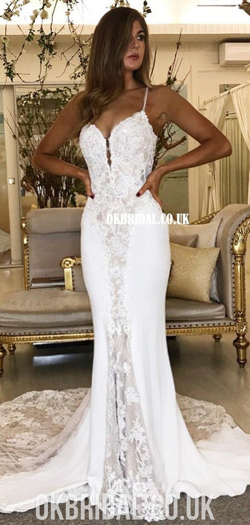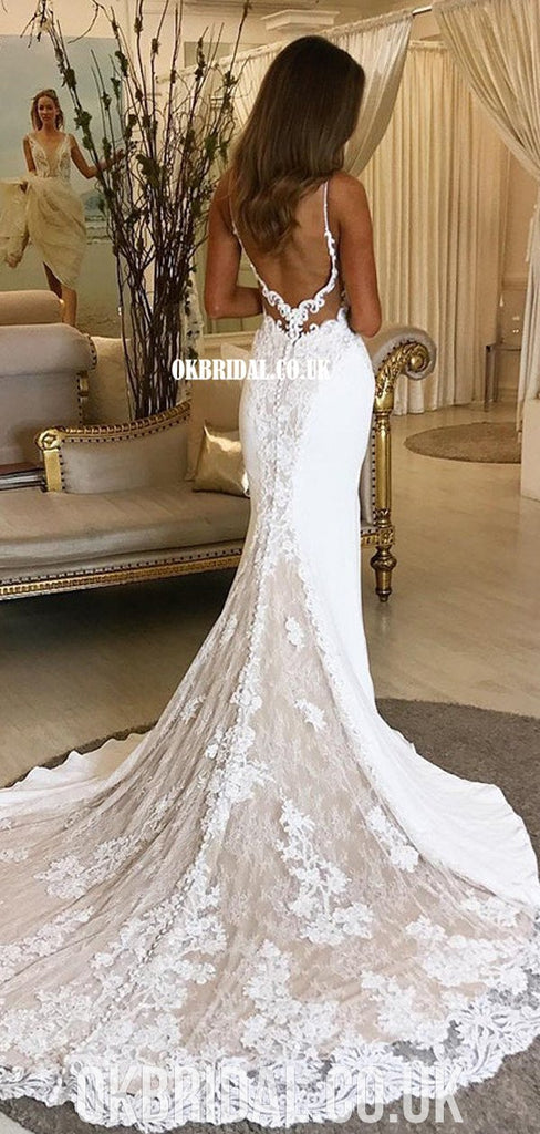 Spaghetti Straps Mermaid Lace Backless Sexy Wedding Dresses, FC4918