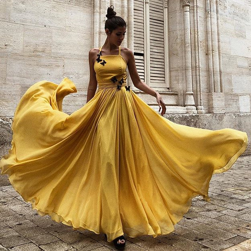 Charming Chiffon A-Line Backless Appliques Prom Dresses, FC2309