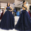 Elegant A-Line Beaded Prom Dresses, Charming Tulle Floor-Length Backle
