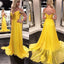 Bright Yellow Off Shoulder Prom Dresses, Charming Backless Chiffon Beaded A-Line Prom Dresses, KX185