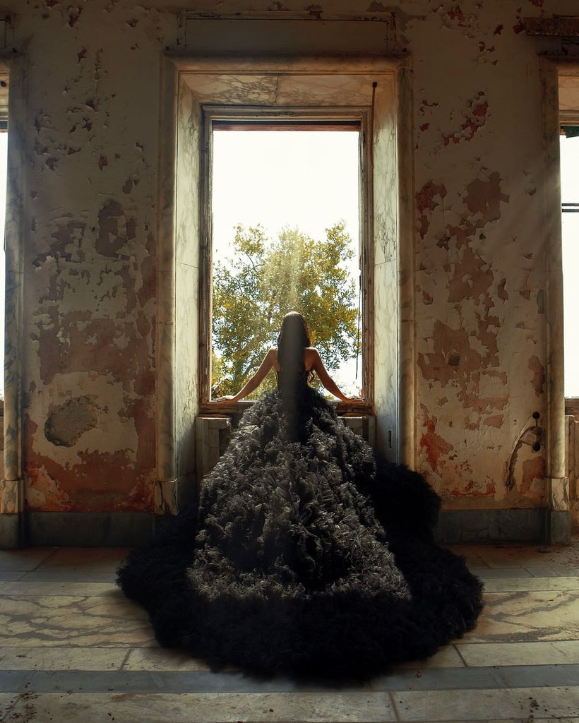 Stunning Black A-line Tulle Sexy High Slit Sequin Dresses, FC6536