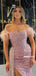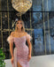 Off Shoulder Mermaid Pink Sequin High Slit Prom Dresses, FC6237