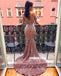 Off Shoulder Pink Sequin Mermaid Backless Sexy Prom Dresses, FC2193