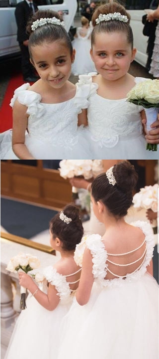 Tulle A-Line Backless Applique Flower Girl Dresses, Flower Girl Dresses, FC1197 Tulle A-Line Backless Applique Flower Girl Dresses, Flower Girl Dresses, FC1197