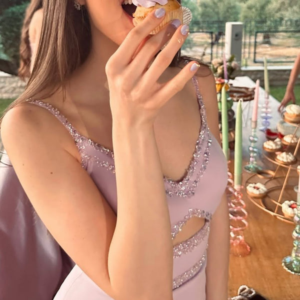 1, Material: Jersey, Beads, elastic like silk .